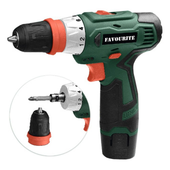 Аккумуляторная дрель-шуруповерт со съемным патроном Favourite DC NEW 12MF предназначена для сверления отверстий в различных конструкциях, а также для заворачивания/отворачивания винтов и шурупов.