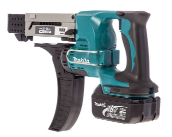 Шуруповерт MAKITA DFR 550 RFE для закручивания шурупов и винтов на 4 мм длиной от 25 до 55 мм. Материалы - пластик, дерево и металл. Напряжения питания - 18 В. Источник питания - Li-Ion батарея емкостью 3.0 Ач. В комплекте 2 батареи и зарядное устройство.