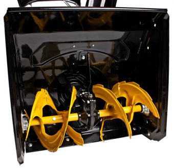 Для разгрузки снега в нужном направлении необходимо задать подходящий угол разворота разгрузочному желобу. Металлический шнек с зубьями отлично справляется с уборкой больших сугробов, и измельчением слежавшегося снега.