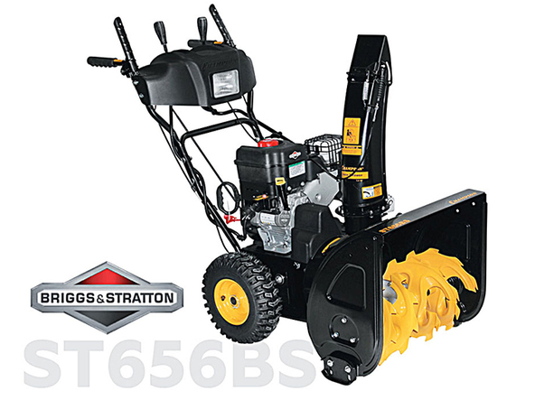 CHAMPION ST656BS — бензиновый самоходный снегоуборщик для очистки от снега подъездных дорожек и придомовой территории. Модель оснащена 4-тактным двигателем мощностью 6,5 л.с. Имеет 6 скоростей вперед и 2 назад. Запуск осуществляется электростартером. Запитка производится от электросети. Максимальная дальность выброса собранного снега — 8 м.