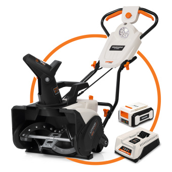 Комплектация: снегоуборщик; АКБ 40 В; 4 Ач ; З.У.; ключ включения; ключ включения; гарантийный талон; коробка