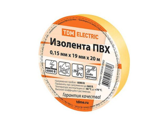 Изолента ПВХ 19 мм 20 м TDM желтая - выполнена из современных материалов, отличается небольшим весом, высоким коэффициентом растяжения.