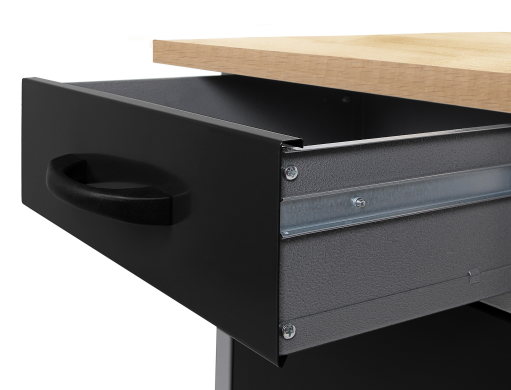В нем есть два выдвижных ящика, в которых можно удобно разложить инструменты и мелкие предметы, такие как шурупы, гвозди и скотч.