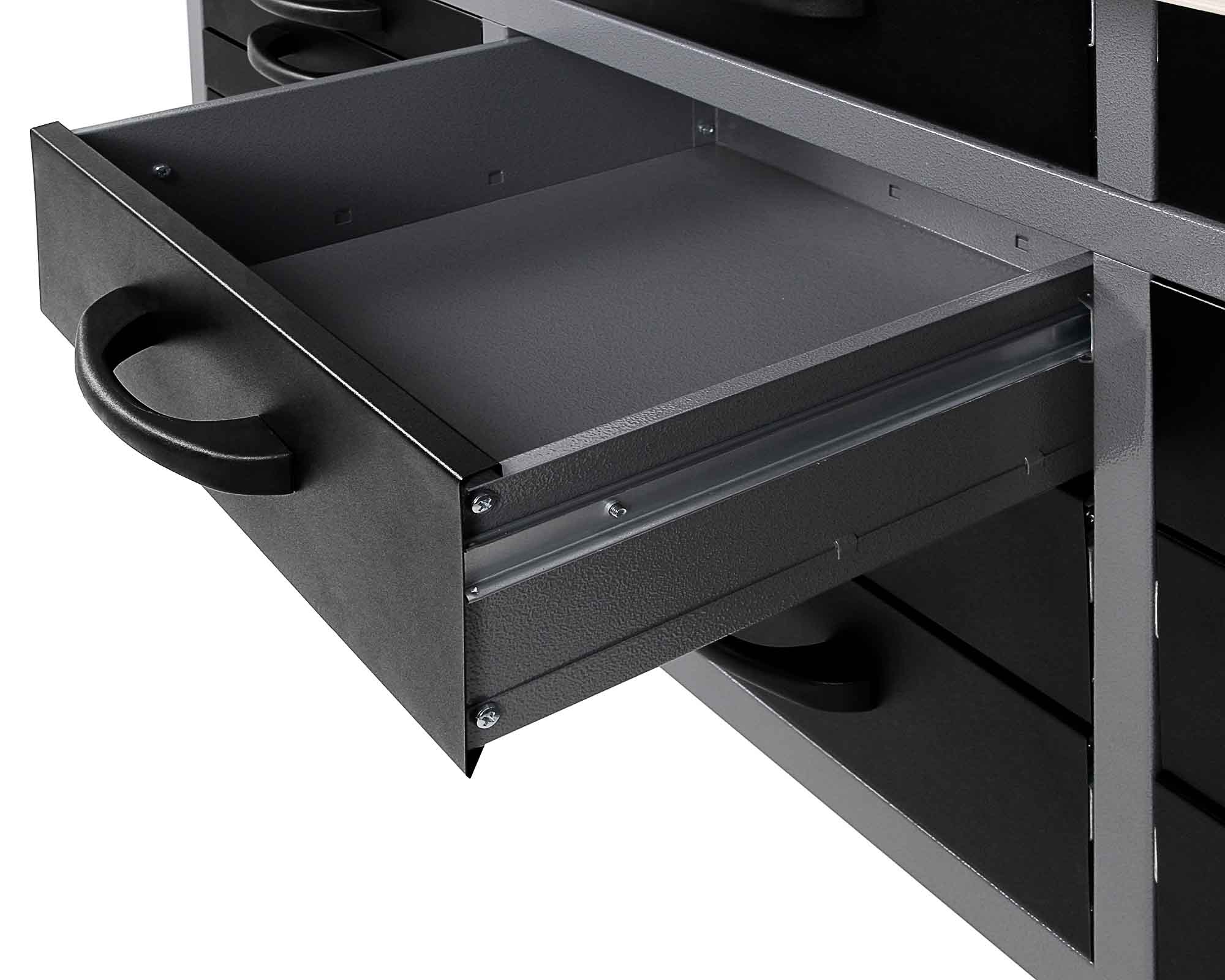 Под деревянной панелью находятся 15 выдвижных ящиков (каждый с грузоподъемностью до 20 кг) 2 разных размеров.