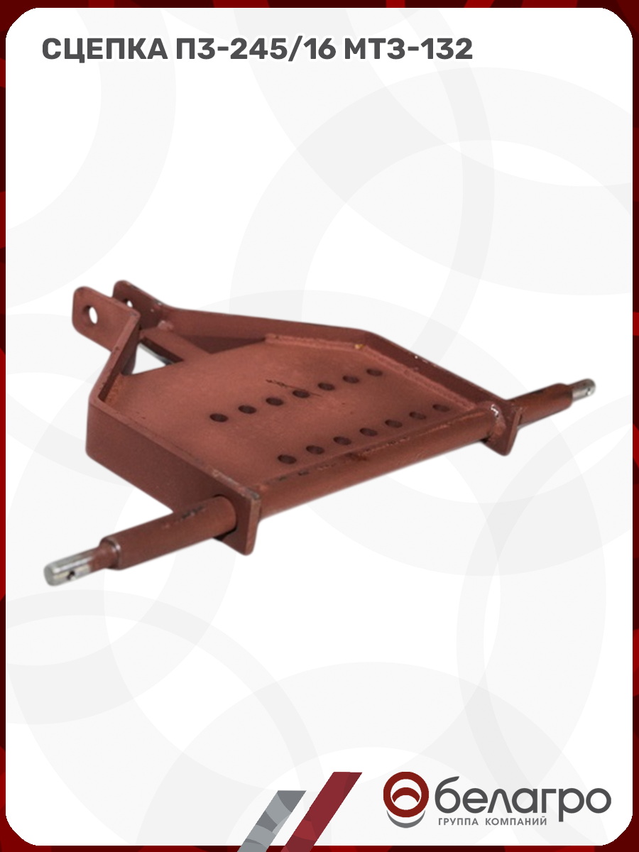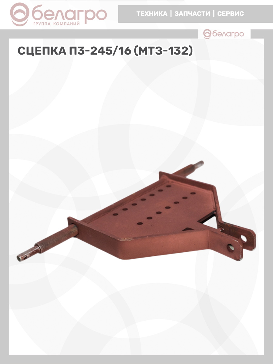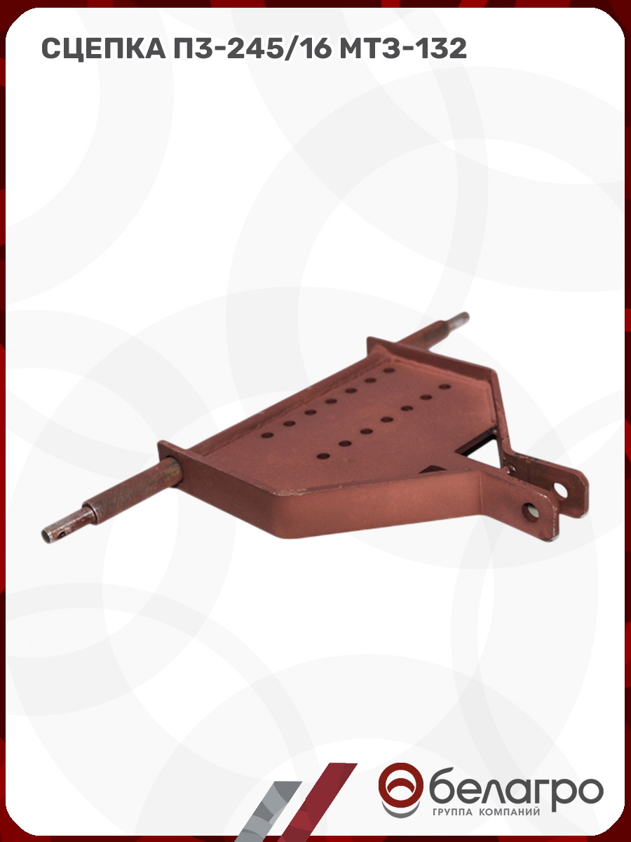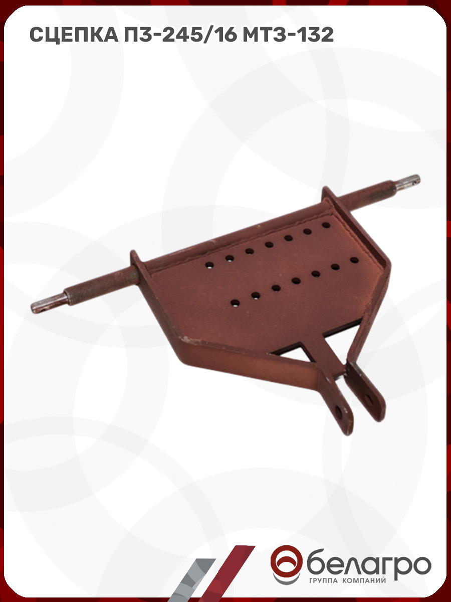 Сцепка фиксирует навесное оборудование на мини-тракторе и определяет глубину захода плуга или окучника в почву. Агрегатируется с мини-трактором МТЗ-132 и плугом П3-245/16.