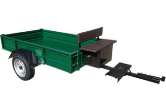 Прицеп оснащен ящиком для инструментов, мягкой двухместным сиденьем, откидным задним бортом с увеличенной высотой – 38 см.