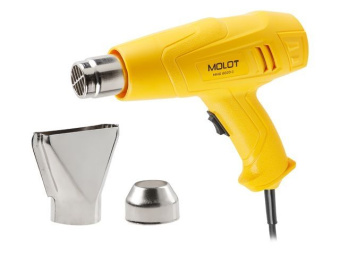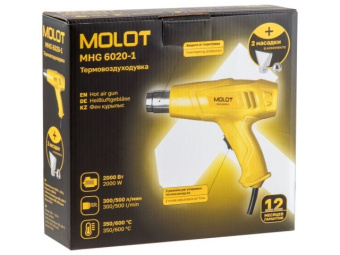 Термовоздуходувка MOLOT MHG 6020-1 в кор. + набор сопл 2000 Вт, 2 скор., 350-600 °С (Ступенч. рег., 300-500 л/мин)