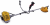 Скашивает мягкую траву с помощью лески и жесткую траву с помощью ножа.