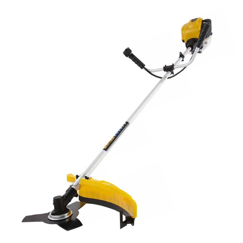 Бензиновый триммер мощностью 1,4 л.с. позволяет не только ухаживать за газоном и скашивать сорняки, но и спиливать молодые кустарники и деревья.