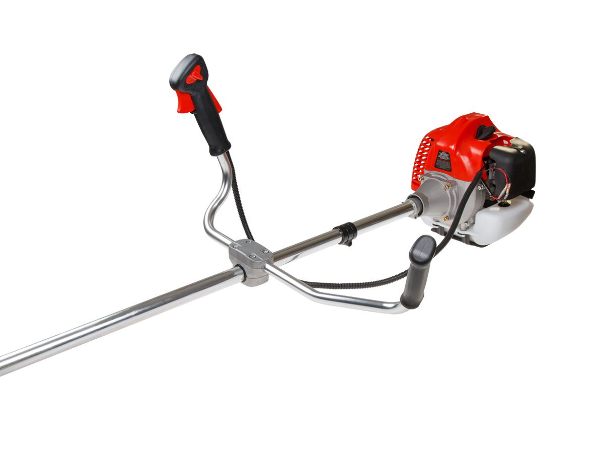 Удобная и эргономичная рукоятка триммера изготовлена в виде велосипедного руля и может устанавливаться в различных положениях, это обеспечивает максимальную управляемость и уменьшает нагрузку на опорно-двигательный аппарат оператора.