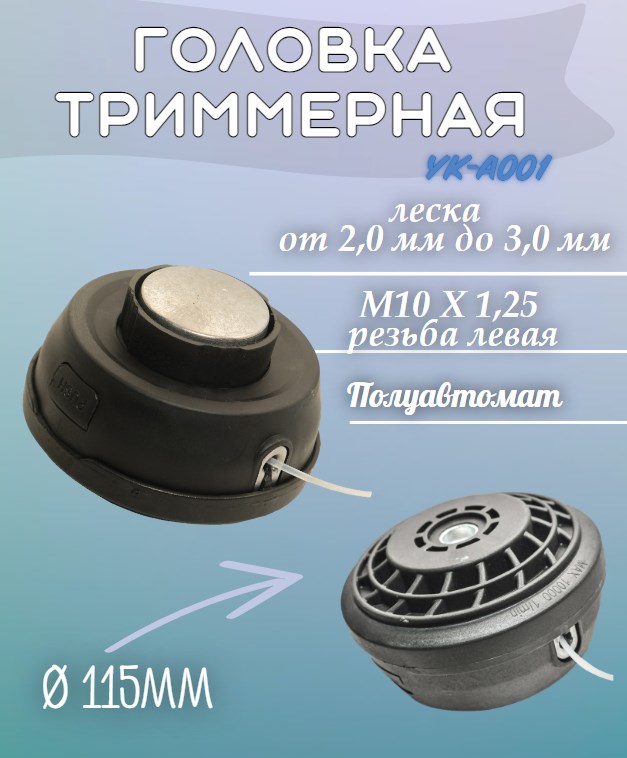 -YK-A001 Головка триммерная М10х1,25 леваяНожи для газонокосилокНожи для триммеровЦепи и шины для цепных пилСредства защитыДля мотопомпЛеска триммернаяДля сварочного оборудованияСвечи зажиганияДля аппаратов высокого давленияАксессуары к садовым тракторам (райдерам)Для воздушных компрессоровДля виброплитДля пылесосов и пароочистителейК высоторезам, кусторезам, измельчителямПрижимные приспособления
