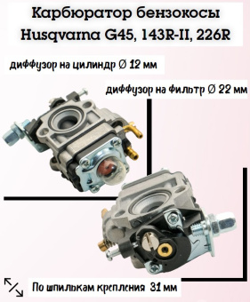 -З/Ч Карбюратор бензокосы Husqvarna G45, 143R-II, 226RЗапчасти к машинам деревообрабатывающимЗапчасти к сварочным аппаратамЗапчасти к бензогенераторамЗапчасти к бензопиламЗапчасти к бетоносмесителямЗапчасти к двигателямЗапчасти к минитракторам и навесному оборудованиюЗапчасти к мотоблокам и навесному оборудованиюЗапчасти к мотокультиваторамЗапчасти к мотопомпам