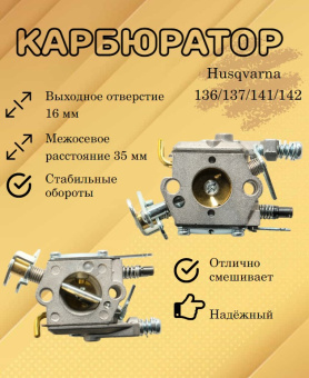 Карбюратор для бензопилы Husqvarna применяется в моделях: 136, 137, 141,142.