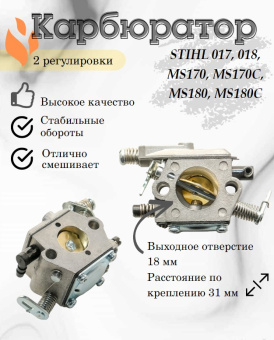 Карбюратор совместим с бензопилами STIHL 017, 018, MS170, MS170C, MS180, MS180C