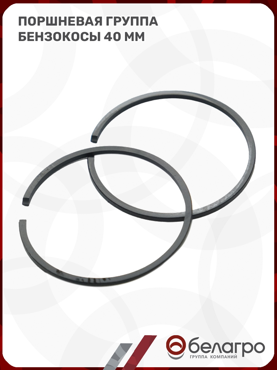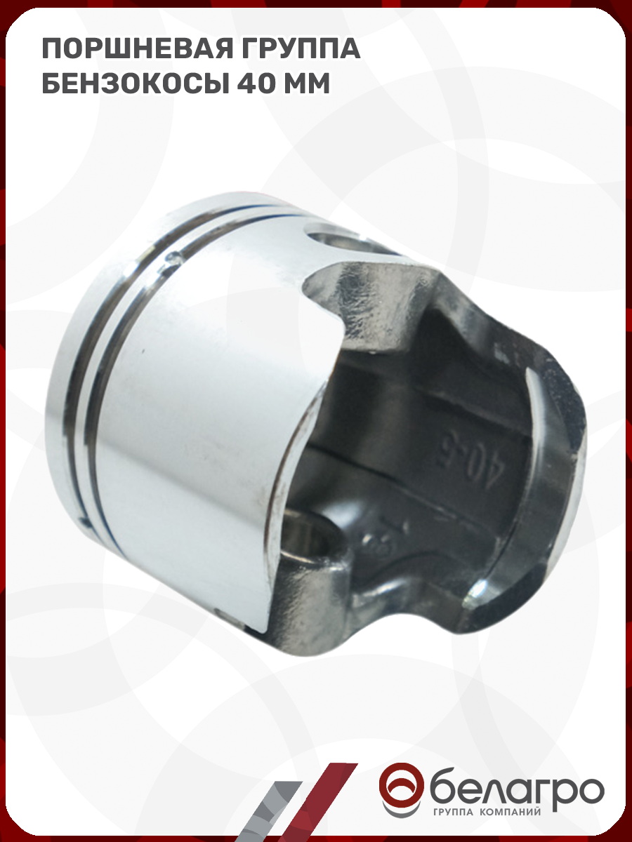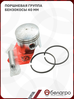 В комплект входит: поршень диаметром 40 мм, кольца компрессионные, кольца стопорные, палец поршневой диаметром 10mm