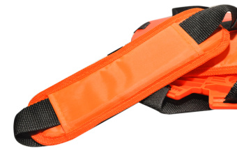 В отличие от одноплечного ремня двуплечный распределяет вес косы равномерно по всему корпусу работника.