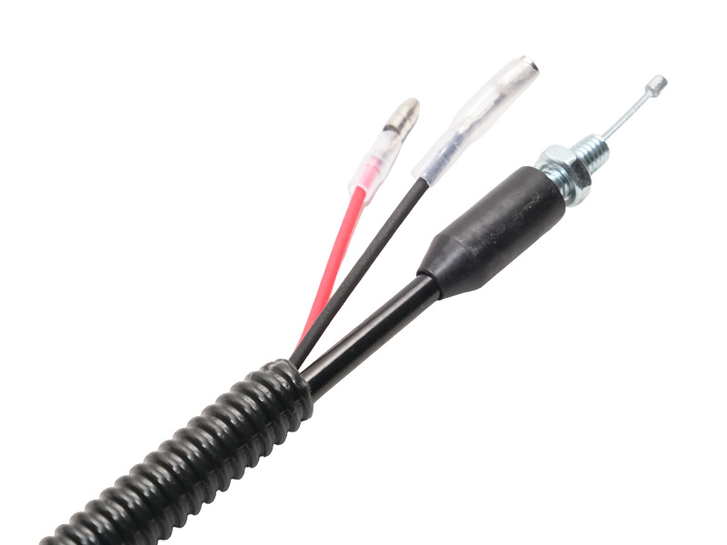В сборе с пультом управления (ручкой газа), тросом газа и проводкой.