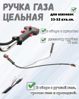 Руль (цельная труба 19 мм.) в сборе с ручкой газа (пультом) для бензотриммера с объемом двигателя 33-52 куб.см.