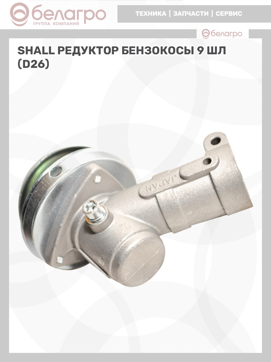 -З/Ч SHALL Редуктор бензокосы 9 шл (D26)Запчасти к машинам деревообрабатывающимЗапчасти к сварочным аппаратамЗапчасти к бензогенераторамЗапчасти к бензопиламЗапчасти к бетоносмесителямЗапчасти к двигателямЗапчасти к минитракторам и навесному оборудованиюЗапчасти к мотоблокам и навесному оборудованиюЗапчасти к мотокультиваторамЗапчасти к мотопомпам