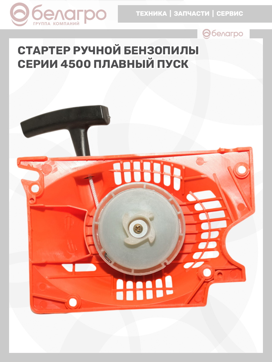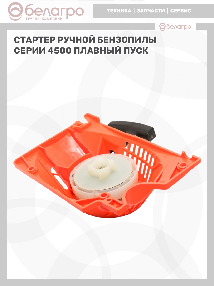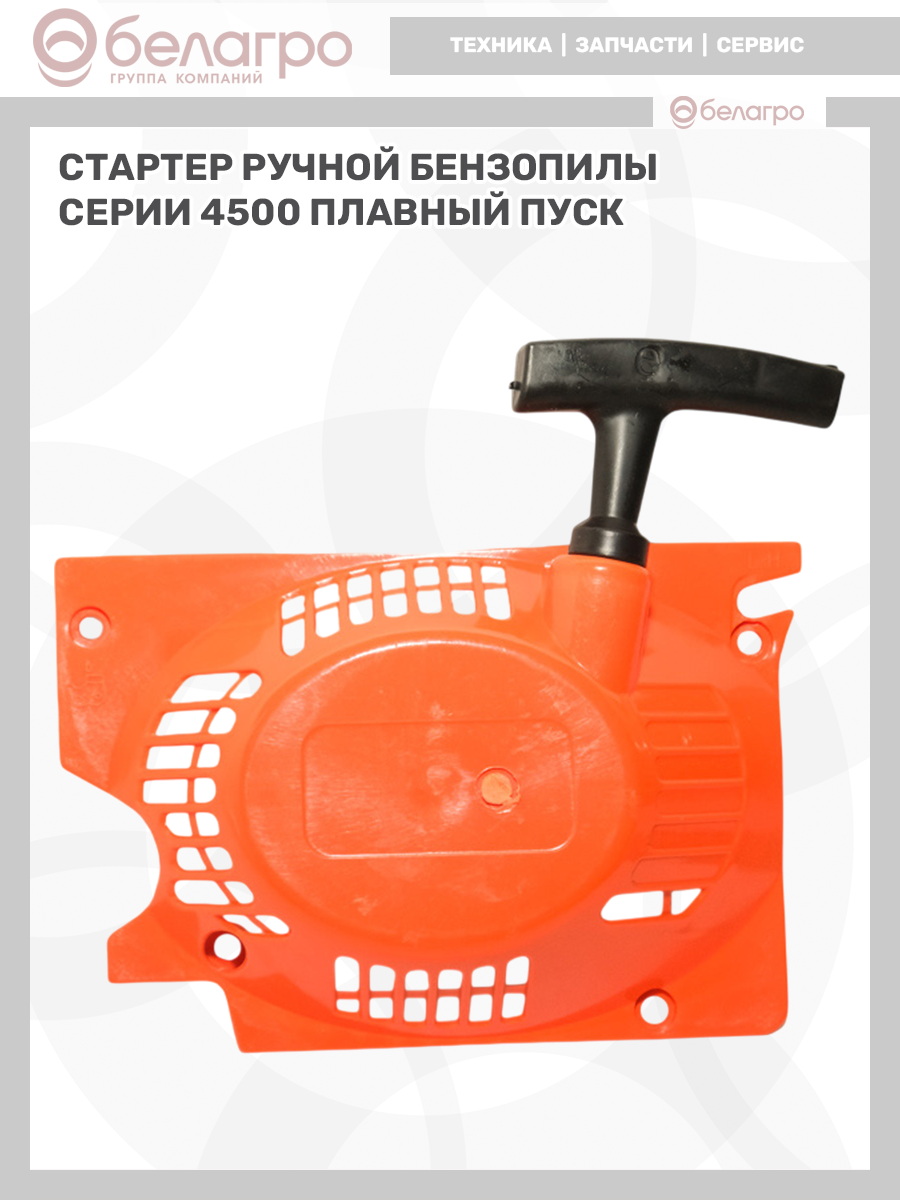 -З/Ч Стартер ручной бензопилы серии 4500 (плавный пуск)Запчасти к машинам деревообрабатывающимЗапчасти к сварочным аппаратамЗапчасти к бензогенераторамЗапчасти к бензокосамЗапчасти к бетоносмесителямЗапчасти к двигателямЗапчасти к минитракторам и навесному оборудованиюЗапчасти к мотоблокам и навесному оборудованиюЗапчасти к мотокультиваторамЗапчасти к мотопомпам