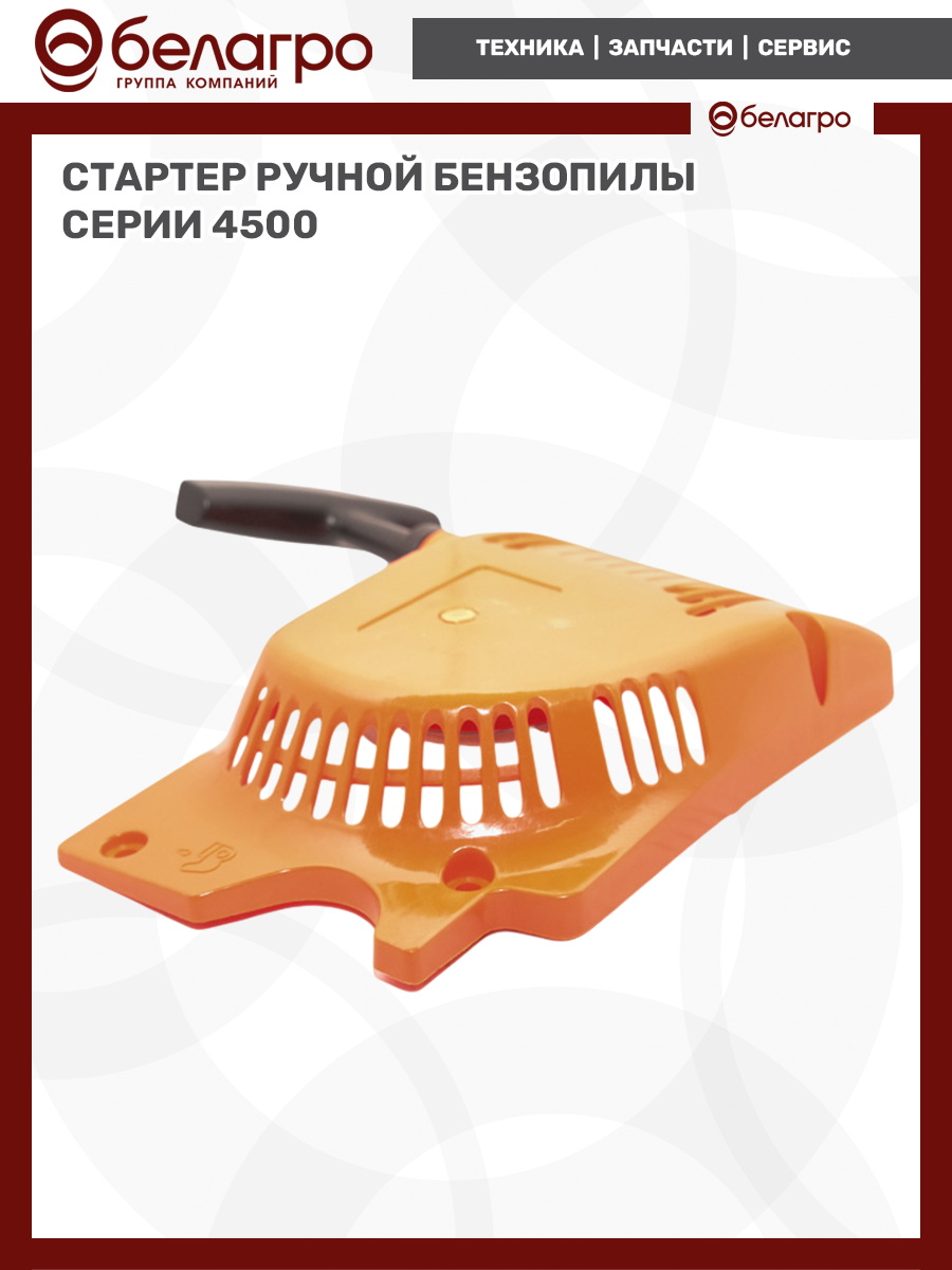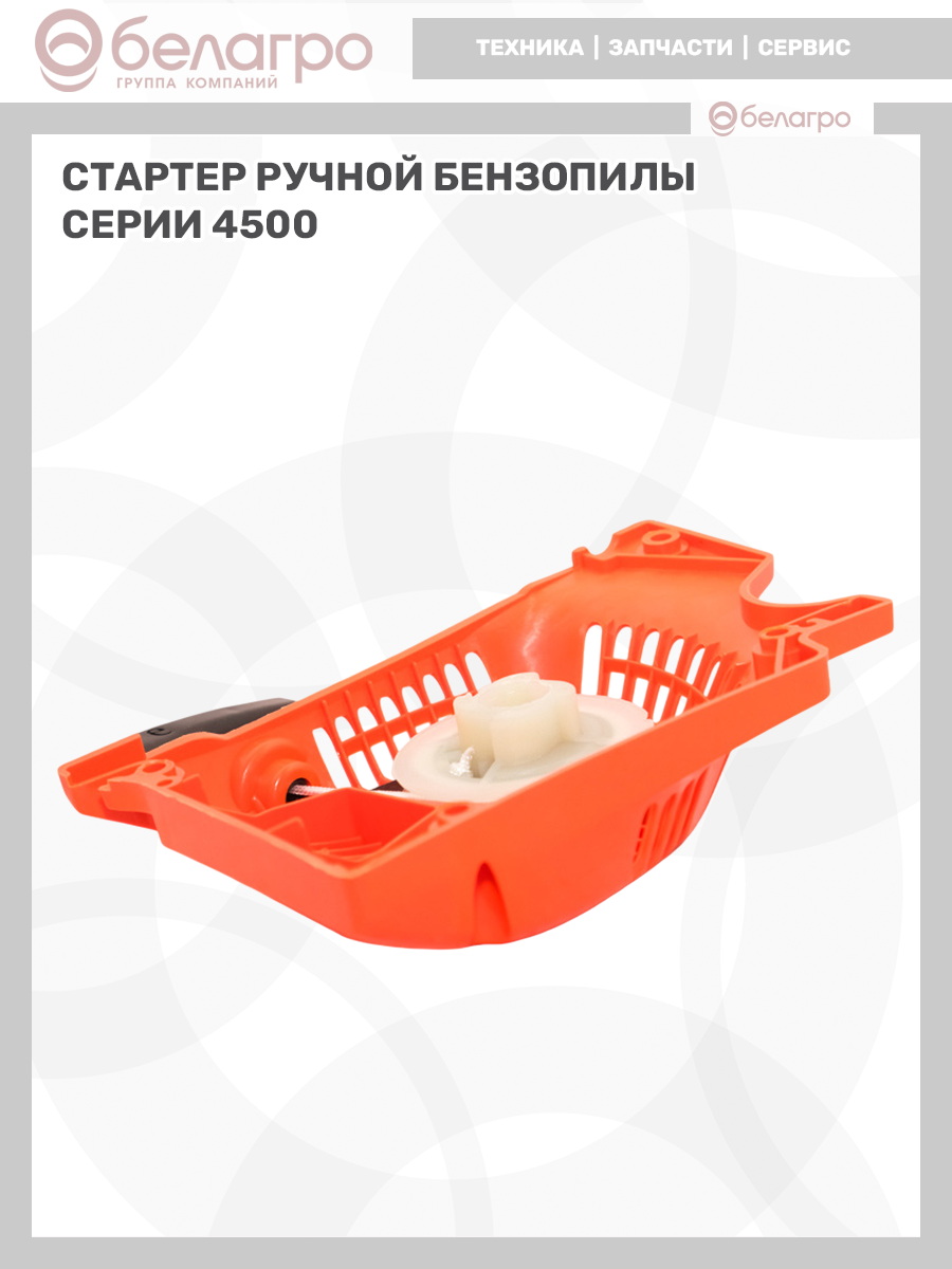 -З/Ч Стартер ручной бензопилы серии 4500Запчасти к машинам деревообрабатывающимЗапчасти к сварочным аппаратамЗапчасти к бензогенераторамЗапчасти к бензокосамЗапчасти к бетоносмесителямЗапчасти к двигателямЗапчасти к минитракторам и навесному оборудованиюЗапчасти к мотоблокам и навесному оборудованиюЗапчасти к мотокультиваторамЗапчасти к мотопомпам
