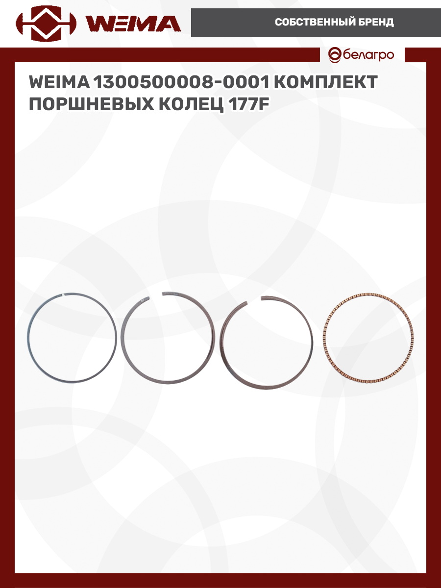 З/Ч WEIMA 1300500008-0001 Комплект поршневых колец (177F)